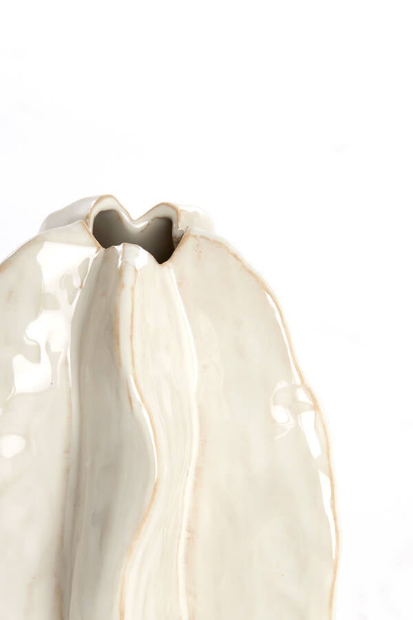 Kleine keramische vaas in crème, perfect voor een enkele bloem of als onderdeel van een decoratieve set. Ideaal voor vensterbank, plank of salontafel.